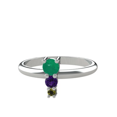 Kök zümrüt, ametist ve peridot 925 ayar gümüş yüzük