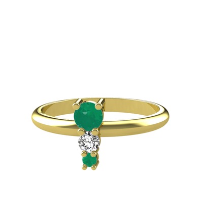Kök zümrüt ve beyaz zirkon 18 ayar altın yüzük