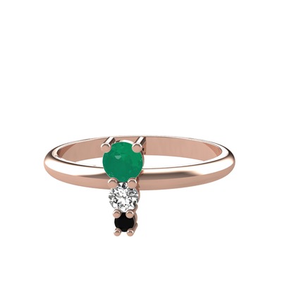 Kök zümrüt, beyaz zirkon ve siyah zirkon 18 ayar rose altın yüzük