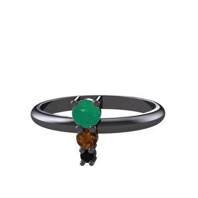 Kök zümrüt, dumanlı kuvars ve siyah zirkon 925 ayar siyah rodyum kaplama gümüş yüzük