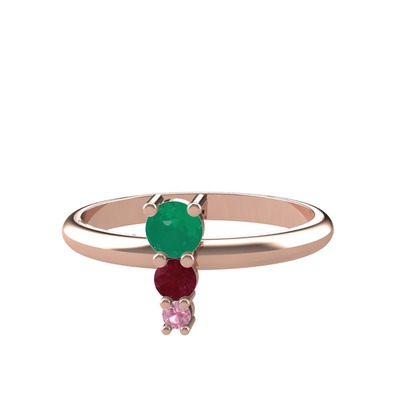Kök zümrüt, kök yakut ve pembe kuvars 925 ayar rose altın kaplama gümüş yüzük