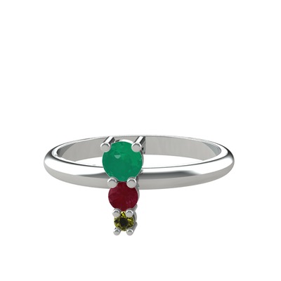 Kök zümrüt, kök yakut ve peridot 18 ayar beyaz altın yüzük