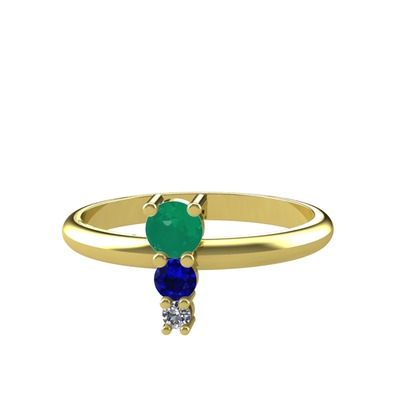 Kök zümrüt, lab safir ve pırlanta 18 ayar altın yüzük (0.036 karat)