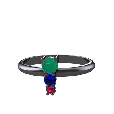 Kök zümrüt, lab safir ve rodolit garnet 925 ayar siyah rodyum kaplama gümüş yüzük