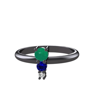 Kök zümrüt, lab safir ve swarovski 925 ayar siyah rodyum kaplama gümüş yüzük