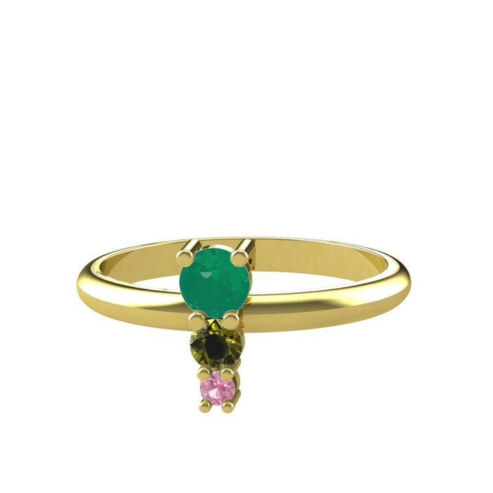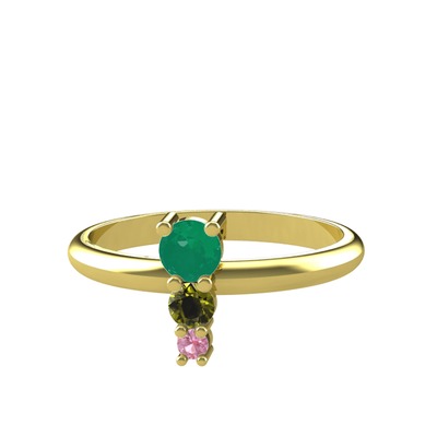 Kök zümrüt, peridot ve pembe kuvars 14 ayar altın yüzük