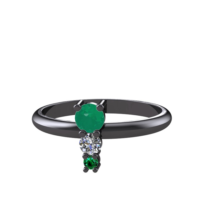 Kök zümrüt, pırlanta ve yeşil kuvars 925 ayar siyah rodyum kaplama gümüş yüzük (0.11 karat)