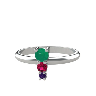 Kök zümrüt, rodolit garnet ve ametist 14 ayar beyaz altın yüzük
