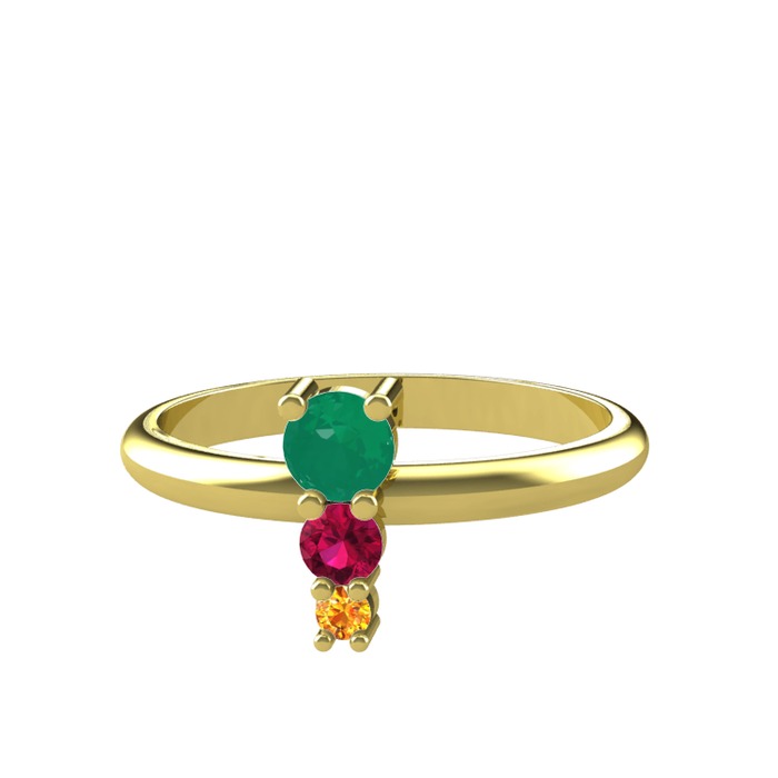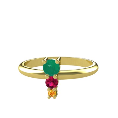 Kök zümrüt, rodolit garnet ve sitrin 8 ayar altın yüzük