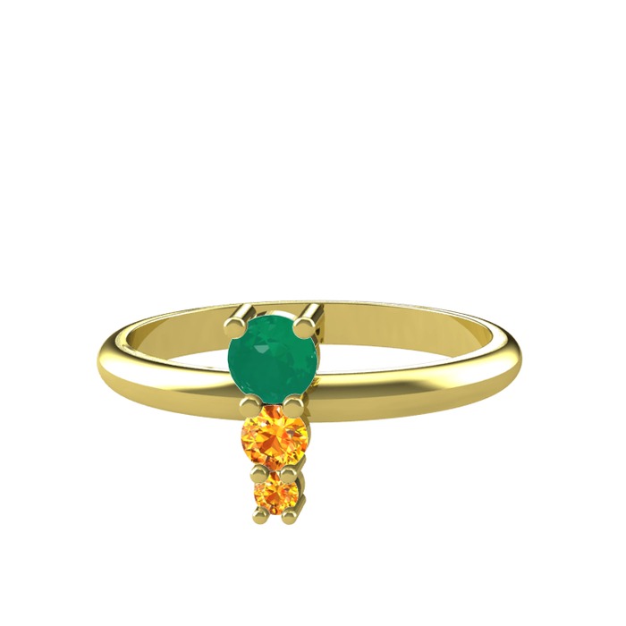 Kök zümrüt ve sitrin 18 ayar altın yüzük