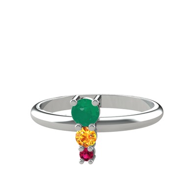 Kök zümrüt, sitrin ve rodolit garnet 8 ayar beyaz altın yüzük