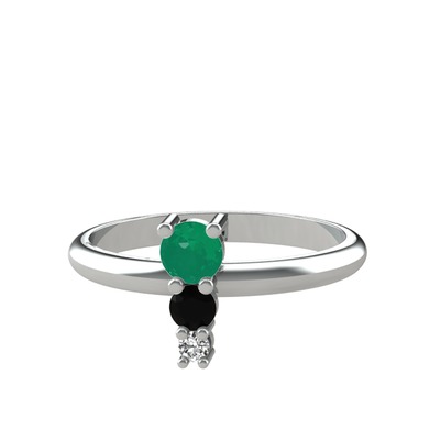 Kök zümrüt, siyah zirkon ve beyaz zirkon 925 ayar gümüş yüzük