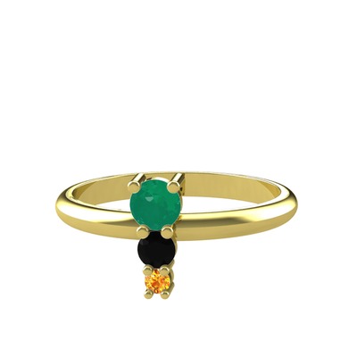 Kök zümrüt, siyah zirkon ve sitrin 8 ayar altın yüzük