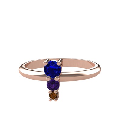 Lab safir, ametist ve dumanlı kuvars 14 ayar rose altın yüzük