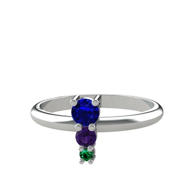 Lab safir, ametist ve yeşil kuvars 14 ayar beyaz altın yüzük