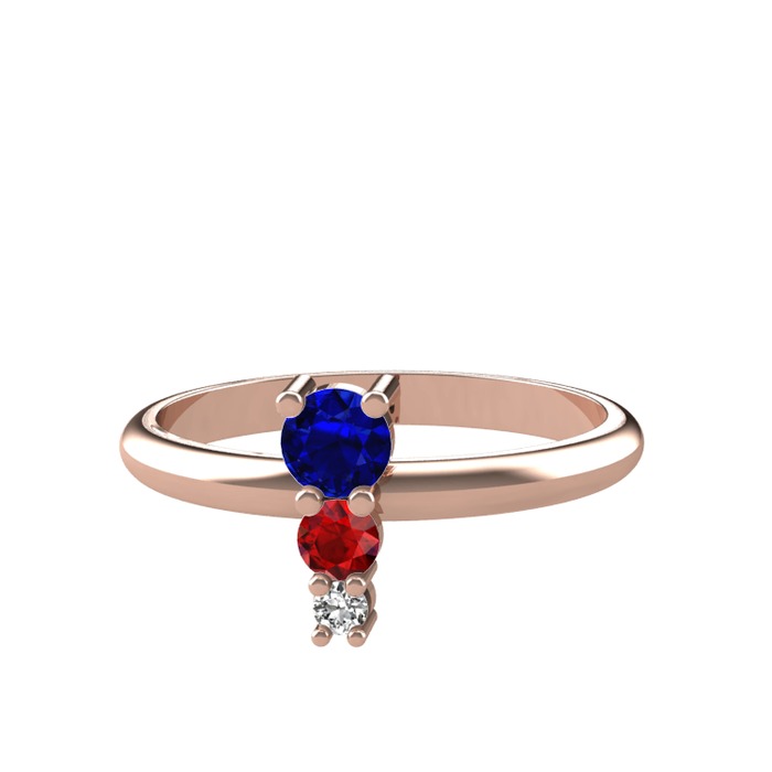 Lab safir, garnet ve swarovski 8 ayar rose altın yüzük