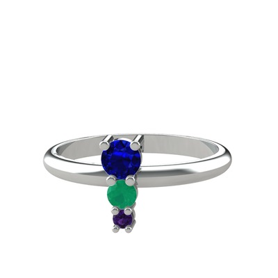 Lab safir, kök zümrüt ve ametist 8 ayar beyaz altın yüzük