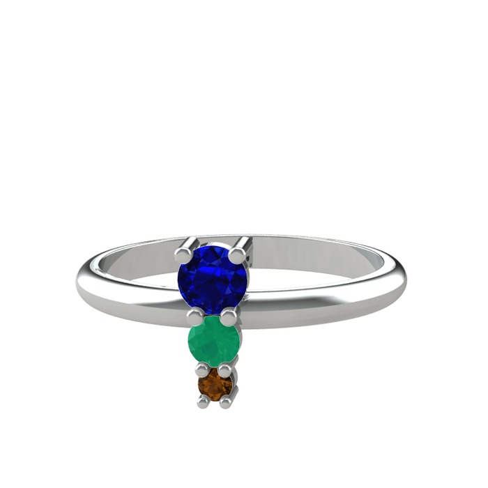 Lab safir, kök zümrüt ve dumanlı kuvars 8 ayar beyaz altın yüzük