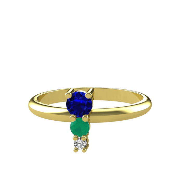 Lab safir, kök zümrüt ve swarovski 925 ayar altın kaplama gümüş yüzük