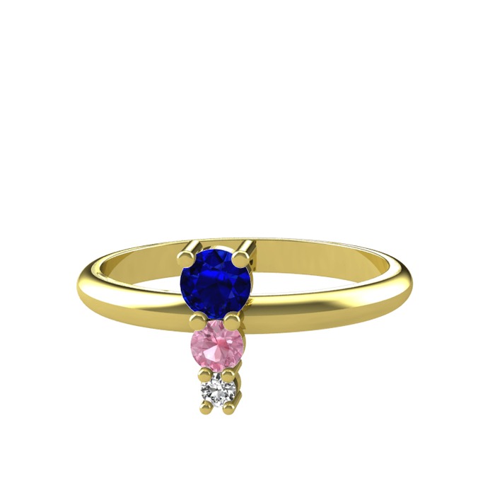 Lab safir, pembe kuvars ve beyaz zirkon 925 ayar altın kaplama gümüş yüzük