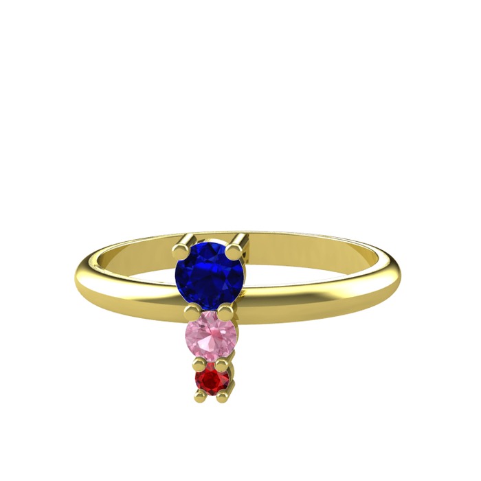 Lab safir, pembe kuvars ve garnet 925 ayar altın kaplama gümüş yüzük