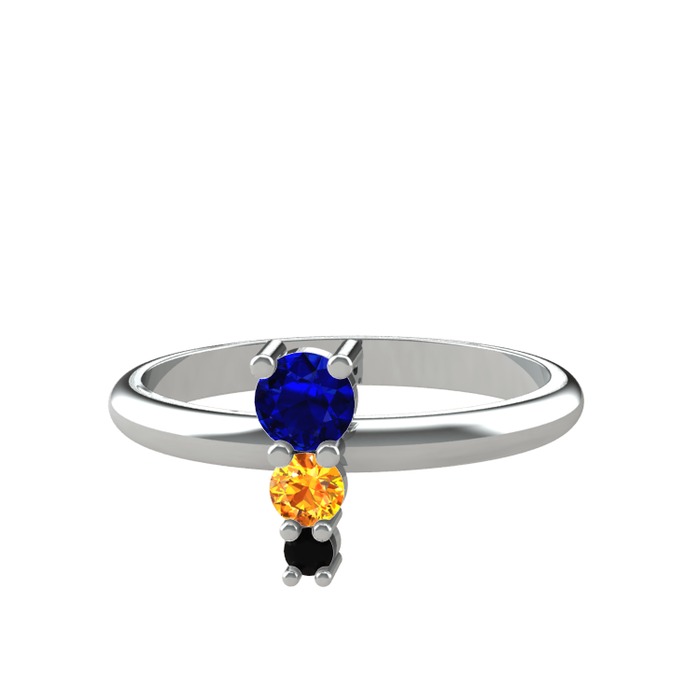 Lab safir, sitrin ve siyah zirkon 8 ayar beyaz altın yüzük