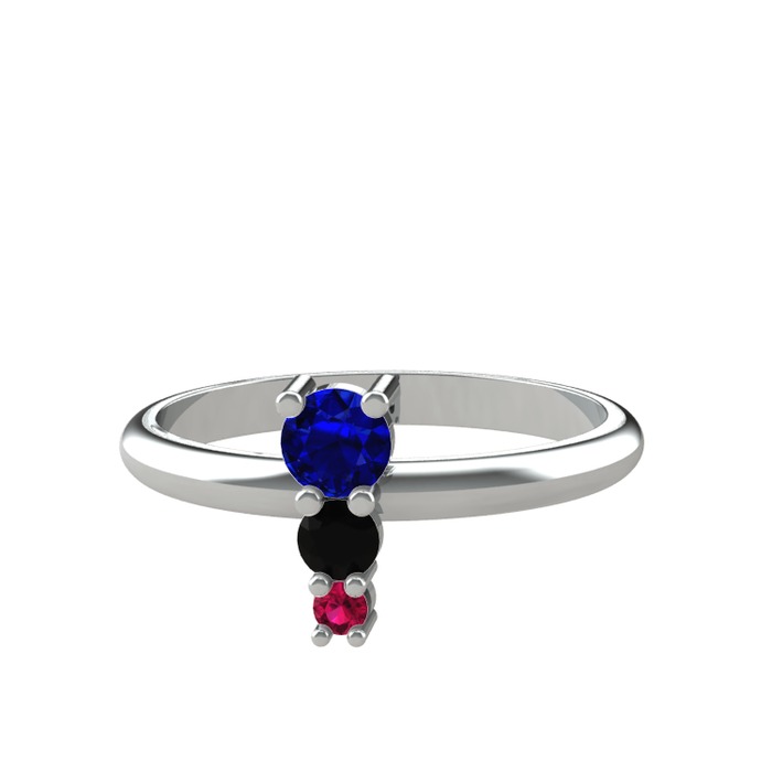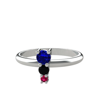 Lab safir, siyah zirkon ve rodolit garnet 14 ayar beyaz altın yüzük
