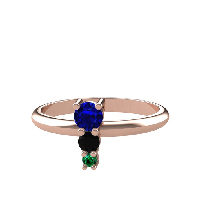 Lab safir, siyah zirkon ve yeşil kuvars 14 ayar rose altın yüzük