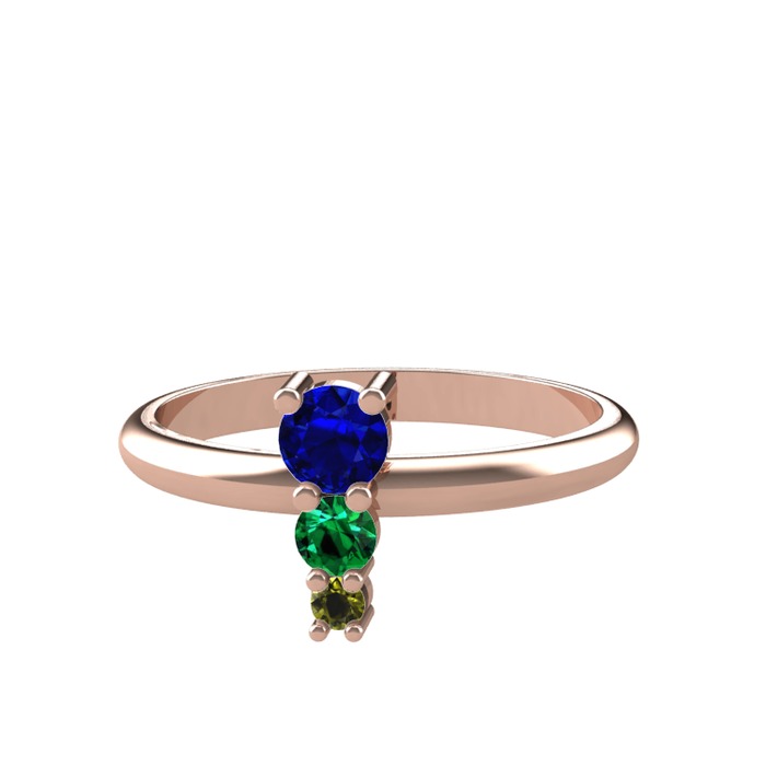 Lab safir, yeşil kuvars ve peridot 18 ayar rose altın yüzük