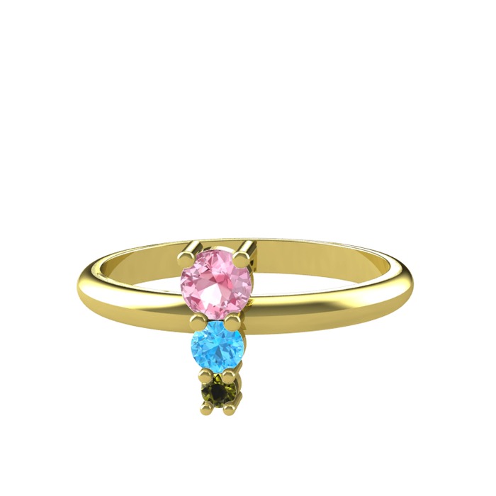 Pembe kuvars, akuamarin ve peridot 8 ayar altın yüzük