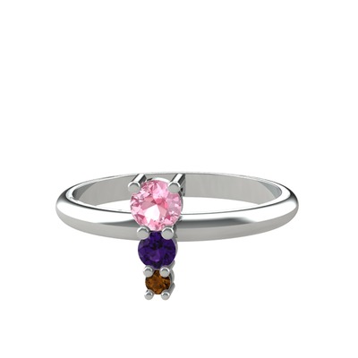 Pembe kuvars, ametist ve dumanlı kuvars 925 ayar gümüş yüzük