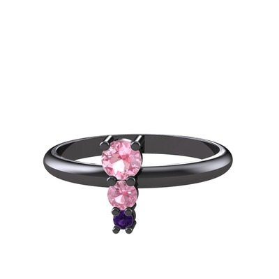 Pembe kuvars ve ametist 925 ayar siyah rodyum kaplama gümüş yüzük