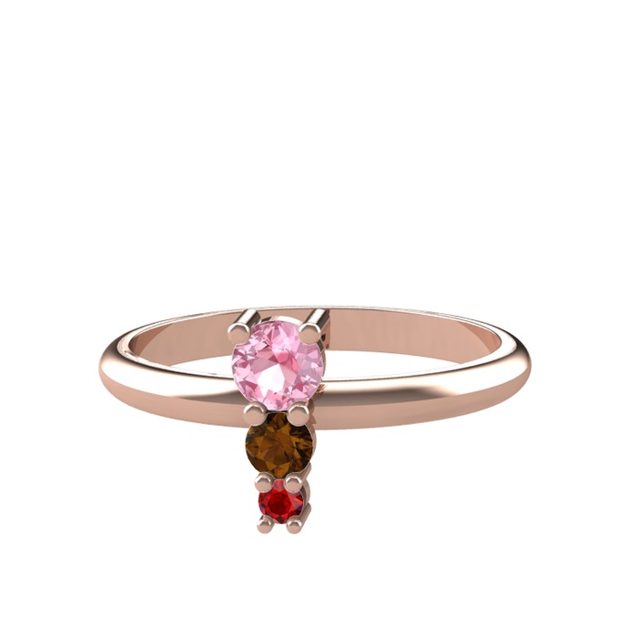 Pembe kuvars, dumanlı kuvars ve garnet 8 ayar rose altın yüzük