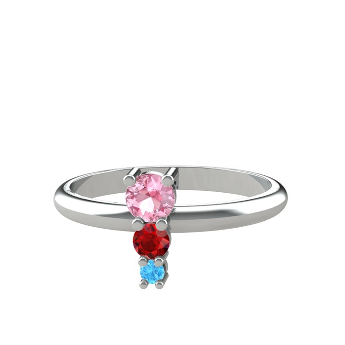 Pembe kuvars, garnet ve akuamarin 18 ayar beyaz altın yüzük