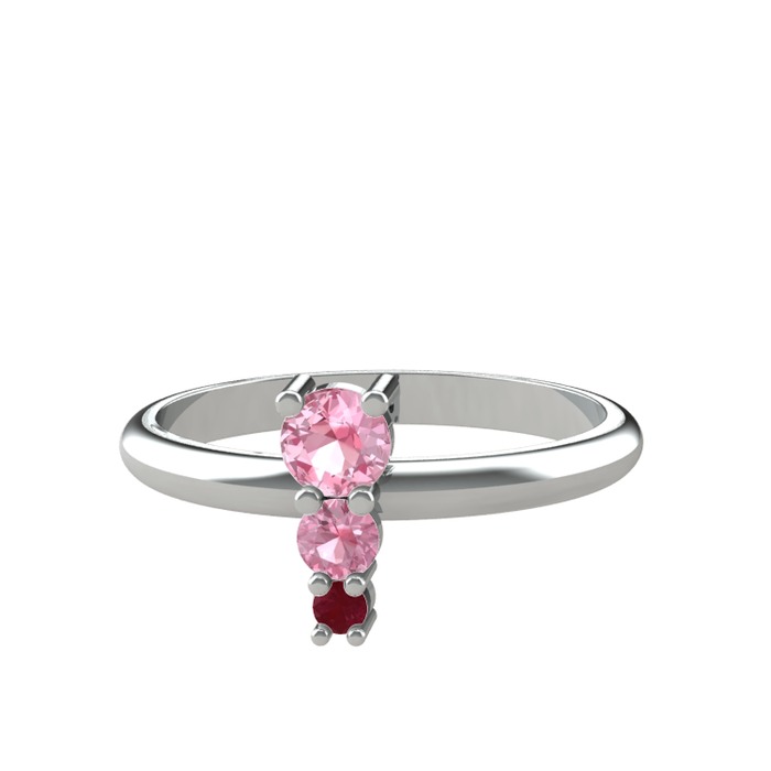 Pembe kuvars ve kök yakut 18 ayar beyaz altın yüzük