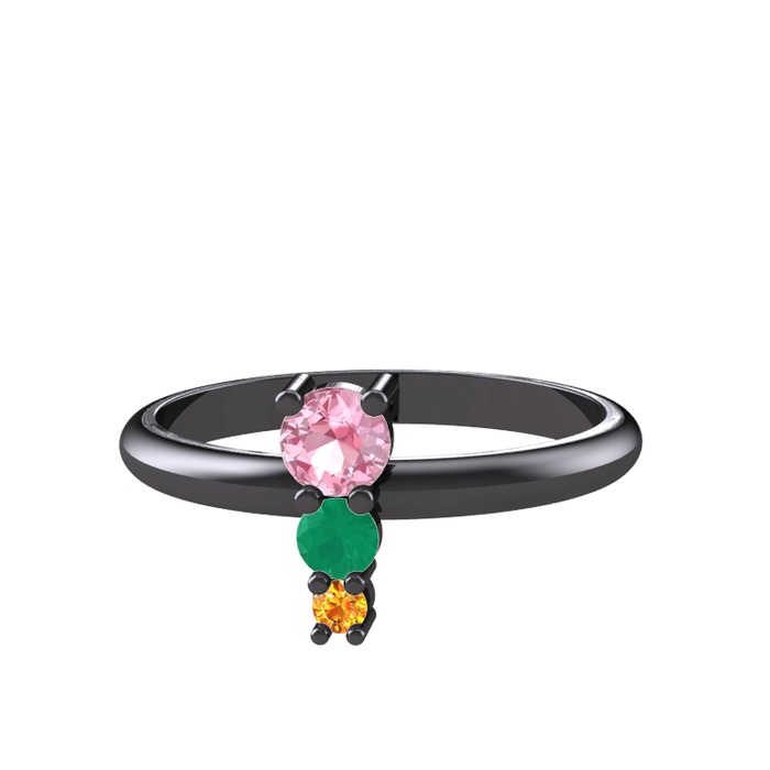 Pembe kuvars, kök zümrüt ve sitrin 925 ayar siyah rodyum kaplama gümüş yüzük