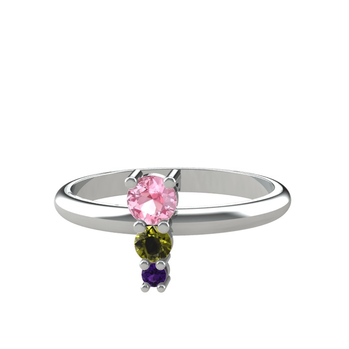 Pembe kuvars, peridot ve ametist 14 ayar beyaz altın yüzük