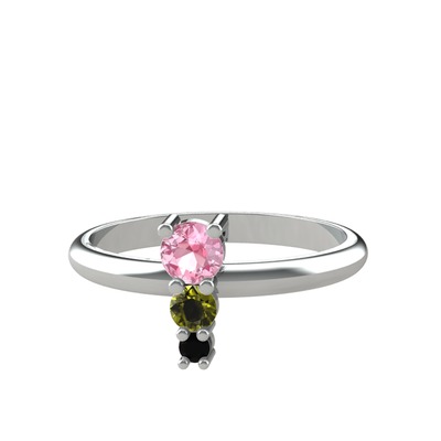 Pembe kuvars, peridot ve siyah zirkon 18 ayar beyaz altın yüzük