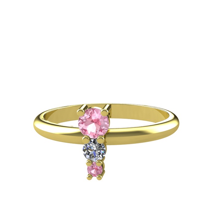 Pembe kuvars ve pırlanta 18 ayar altın yüzük (0.11 karat)