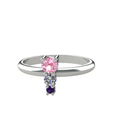 Pembe kuvars, pırlanta ve ametist 14 ayar beyaz altın yüzük (0.11 karat)