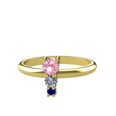 Pembe kuvars, pırlanta ve lab safir 8 ayar altın yüzük (0.11 karat)