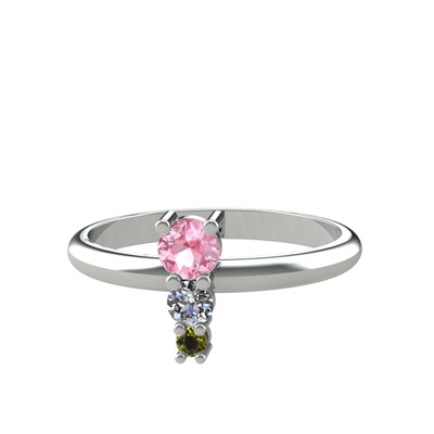 Pembe kuvars, pırlanta ve peridot 925 ayar gümüş yüzük (0.11 karat)
