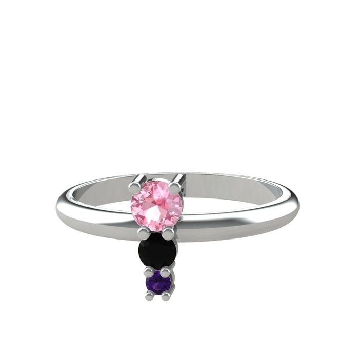 Pembe kuvars, siyah zirkon ve ametist 14 ayar beyaz altın yüzük