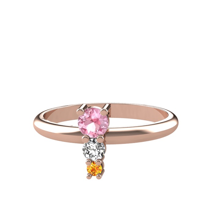 Pembe kuvars, swarovski ve sitrin 8 ayar rose altın yüzük