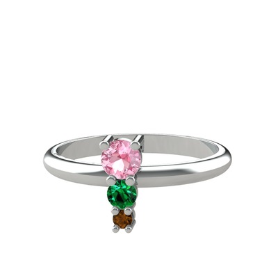 Pembe kuvars, yeşil kuvars ve dumanlı kuvars 18 ayar beyaz altın yüzük