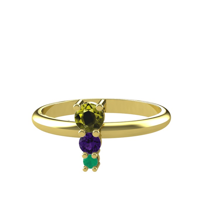 Peridot, ametist ve kök zümrüt 8 ayar altın yüzük