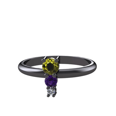 Peridot, ametist ve pırlanta 925 ayar siyah rodyum kaplama gümüş yüzük (0.036 karat)
