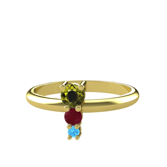 Peridot, kök yakut ve akuamarin 14 ayar altın yüzük