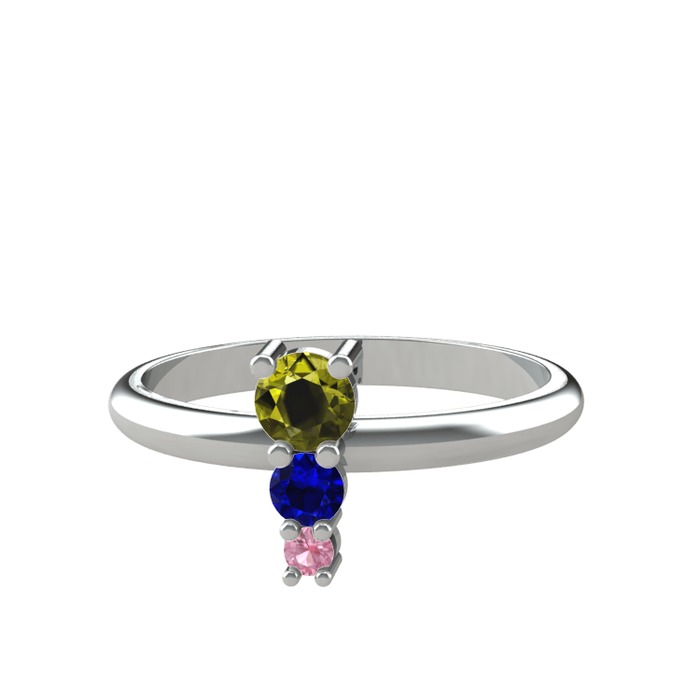 Peridot, lab safir ve pembe kuvars 8 ayar beyaz altın yüzük