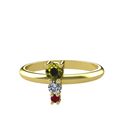 Peridot, pırlanta ve kök yakut 925 ayar altın kaplama gümüş yüzük (0.11 karat)